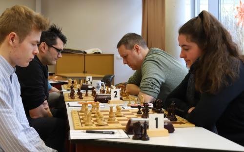 Der Gegner von Andreas Kellmann wies eine geschwächte Stellung während des gesamten Spieles auf und gab dann im Endspiel einen zweiten Bauern drein, so dass es Kellmann gelang, die Kontrolle über seine Partie zu behalten. Obgleich er konstant verteidigen musste, gelang es Alexander Mönius zugleich einen Angriff auf die Königsstellung des Aschaffenburgers Tim Riedel zu starten und sich so eine Atempause zu erringen. Da aufgrund der Komplexität seiner Stellung auf beiden Seiten Vorteile nicht optimal genutzt werden konnten, kam es auch hier zum Remis.