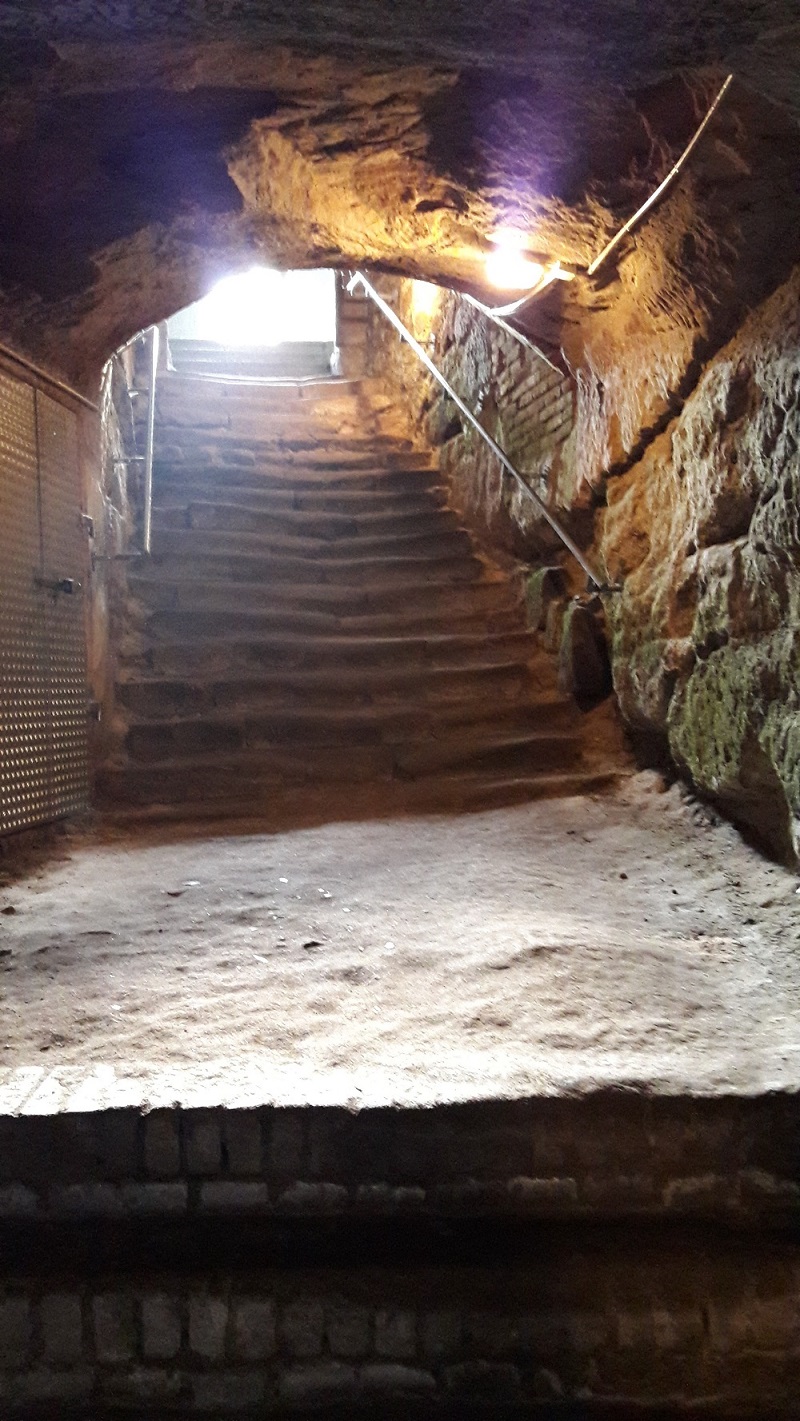 Gelber Eingang gegenüber der Sporthalle