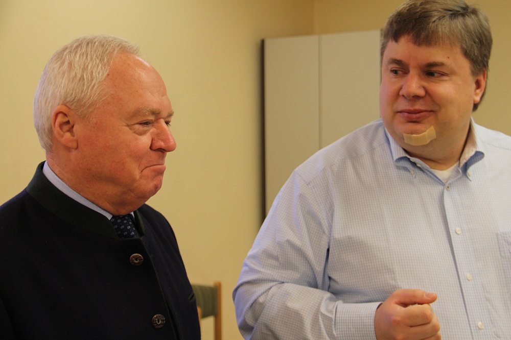 In seiner Eigenschaft als Schirmherr besuchte heute der stellvertretender Landrat und 1.Bürgermeister von Michelau Helmut Fischer die Schachtage. Hier unterhält er sich gerade mit dem Schach-Bezirksvorsitzenden Ingo Thorn.