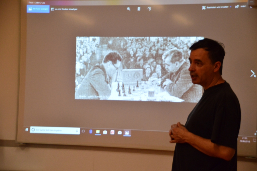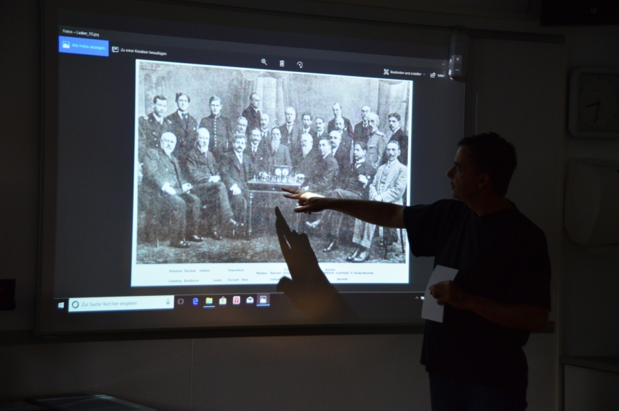 Emanuel Lasker, der einzige deutsche Weltmeister, und das Turnier in St.Petersburg 1914 war das Thema des Vortrages von Michael Brunsch, den die Besucher beim Schachclub Höchstadt mit Spannung lauschten. Michael Brunsch, Jugendtrainer im Schachclub, erklärte den Zuhörern zu Beginn Laskers Leben, beispielsweise wie er 1894 im Alter von 26 Jahren Weltmeister wurde und es ganze 27 Jahre blieb. Sehr interessant wurde es, als Michael Brunsch in seinem Vortrag zum St. Petersburger Turnier kam. Zunächst berichtete er über die damalige Zeit und die Lebensumstände der Schachspieler. Wie vielen aus dem Geschichtsunterricht bekannt ist, begann 1914 der Erste Weltkrieg.