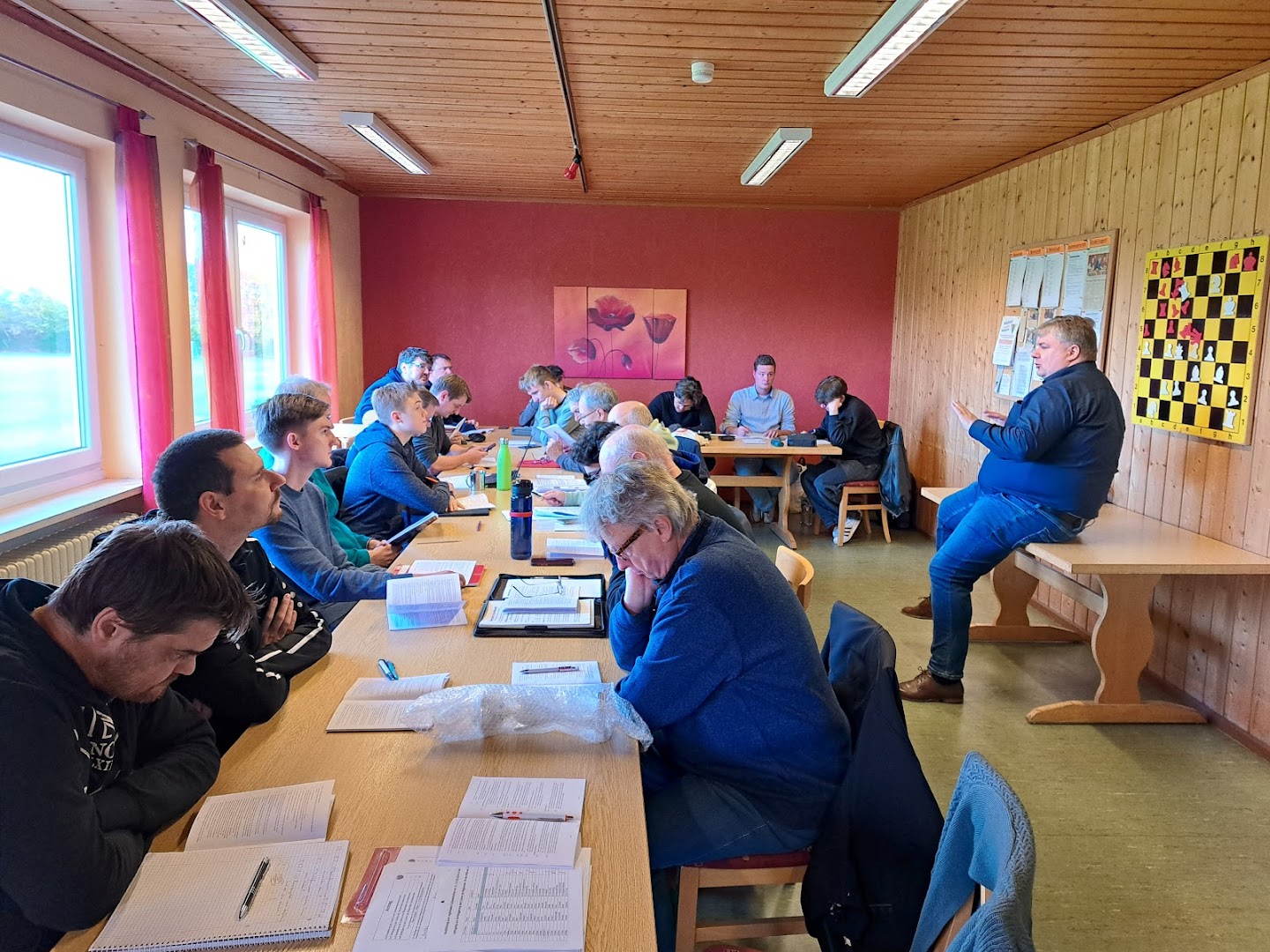 Am Wochenende 11. – 13. Oktober 2024 trafen sich 22 Schachfreunde in Hof, um den Titel „Regionaler Schiedsrichter“ zu erwerben bzw. ihre ablaufende Schiedsrichterlizenz zu verlängern. Aus Oberfranken, Mittelfranken, Berlin und Sachsen-Anhalt waren die Protagonisten angereist. Darunter auch Reiner Schulz vom SC Höchstadt.