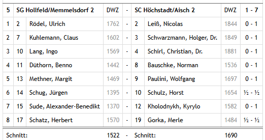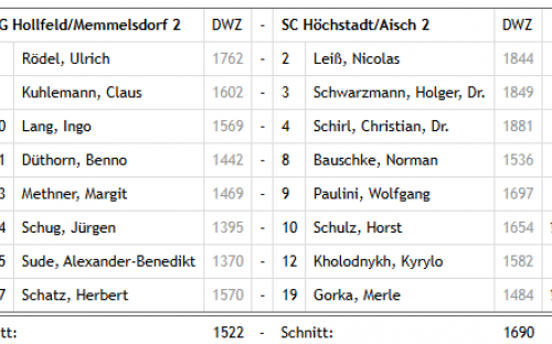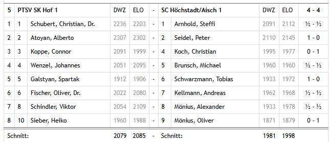 Steffi Arnhold, welche zu Saisonbeginn zum SC Höchstadt gewechselt war, kämpfte an Brett 1 in einem fesselnden Damenendspiel. Am Schluss hatte sie zwar einen Bauern weniger, aber konnte dennoch ein wichtiges Unentschieden erringen.