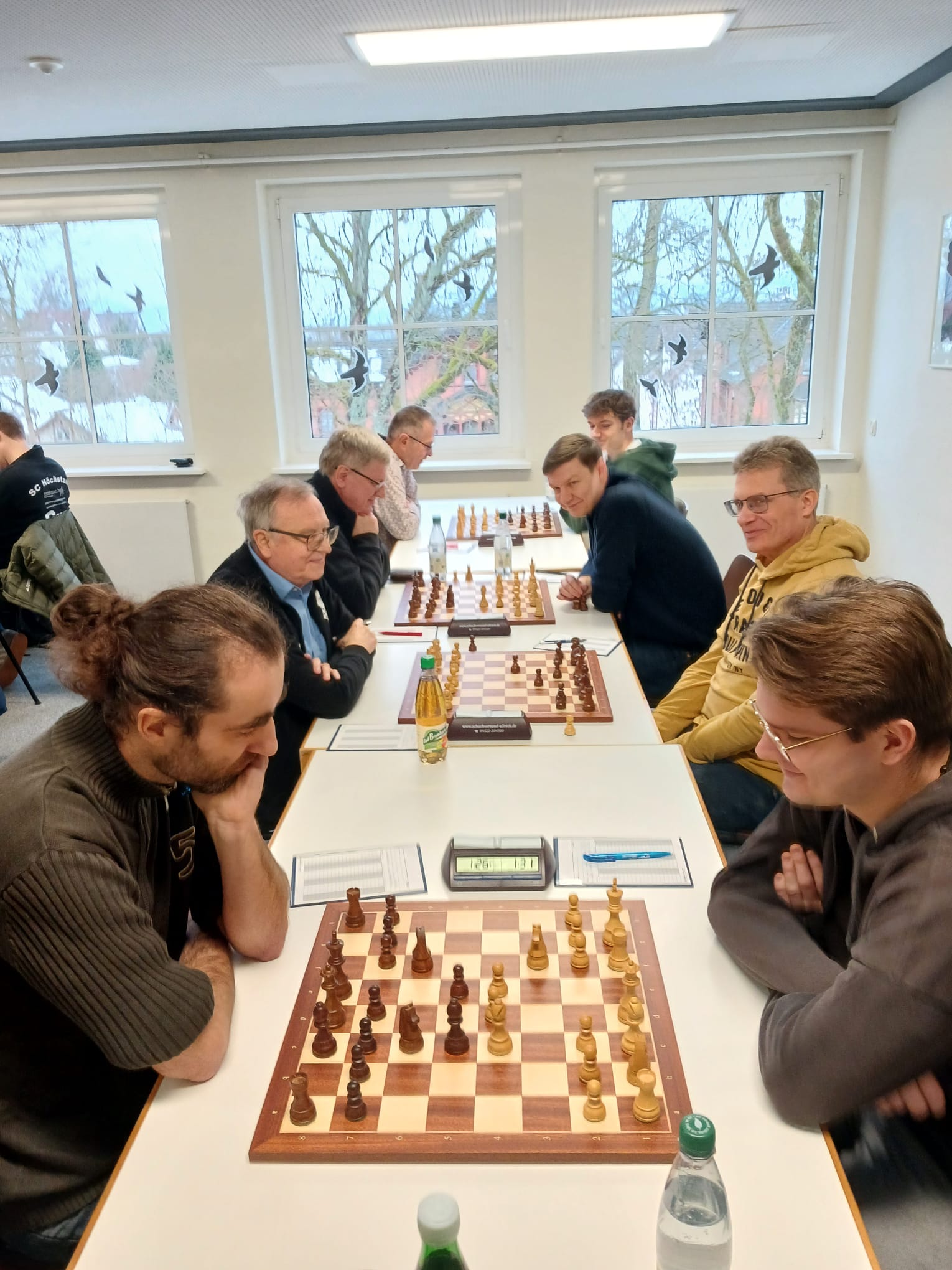 Mit „Discofeeling“ beschreibt Mannschaftsführer Norman Bauschke (Brett 4, Remis) das Gefühl seiner Mannschaft nach dem Auswärtssieg. Dass es eine Teamleistung war, zeigen die einzelnen Partien. An Brett 1 sah es zunächst bis kurz vor Zeitablauf nach einer ausgeglichenen Partie aus, doch eine Vision, die konsequent und fehlerfrei umgesetzt wurde, brachte ihm schlussendlich den Sieg. Christian Schirl (Brett 3) musste sich mit der sog. russischen Verteidigung seines Gegners auseinandersetzen, konnte aber im Mittelspiel 2 Bauern gewinnen und zwang ebenfalls in Zeitnot seinen Gegner durch konsequenten Druck auf dem Schachbrett zum Aufgeben. Wolfgang Paulini hielt den Attacken seines Gegners lange stand, hatte zwischenzeitlich sogar einen Mehrbauern vorzuweisen, der ihm aber wieder verloren ging. Der Sieg von Oliver Mönius, welcher zugleich den Mannschaftssieg bedeutete, öffnete den Weg für ein einvernehmliches Unentschieden, bei relativem Kräftegleichgewicht. Dieser Erfolg wird die 2. Mannschaft des SC Höchstadt anspornen auch an den noch ausstehenden Spieltagen in der Saison 2025/26 alles zu geben.
