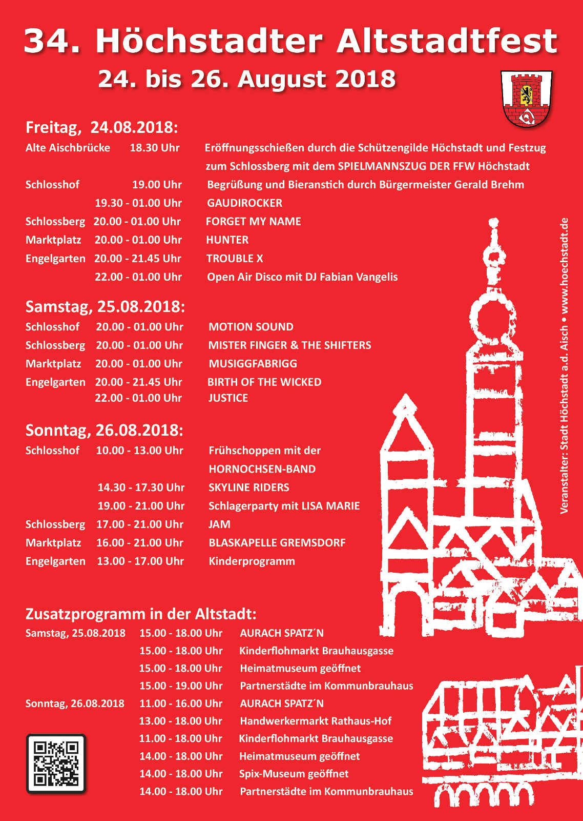 Einzug der Vereine. Von der alten Aischbrücke laufen wir gemeinsam mit den anderen Vereinen zum Bieranstich in den Schlosshof. Wir freuen uns, wenn besonders viele Mitglieder und Freunde des Vereins mitlaufen! (am besten in Vereins T-Shirt) Danach ist ab 19.30 Uhr wieder unser Vereinsabend im Haus der Vereine mit einstündigem Schachtraining und ab 20.30 Uhr der fünften Runde des Sommerturniers und der Stadtmeisterschaft.